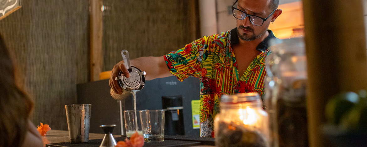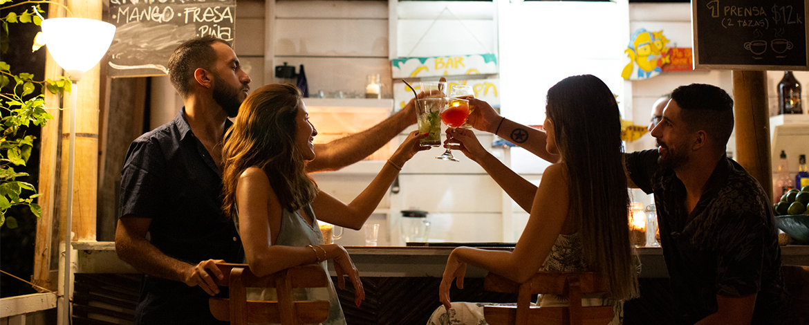 Tenemos en la carta exquisitos cocktails propios de la casa inspirados en los sabores frescos de la zona, en los colores de la isla y en la diversidad del arrecife. También podrás degustar de café tradicional orgánicos de diferentes regiones del país, jugos naturales hechos de frutas frescas, limonada de coco especial de la isla. Cuando cae la tarde, llega la hora del “sunset cocktails”, momento perfecto para disfrutar del hermoso atardecer de las islas, cabe resaltar que estamos ubicados en el mejor punto de la isla para disfrutar de este espectaculo natural.