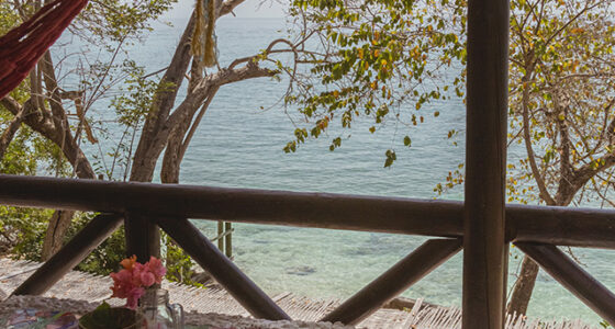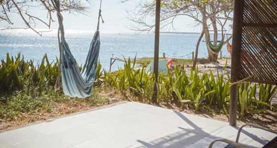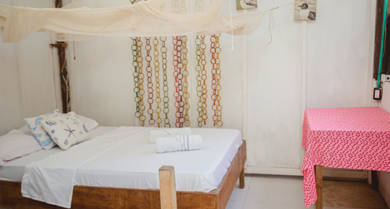Habitación en el segundo nivel con cama doble frente al mar