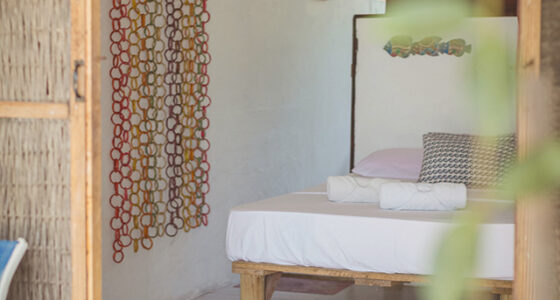 Es un sistema versátil de cubículos que se ajustan al número de personas de una misma reserva creando espacios semiprivados muy frescos y elaborados a partir de técnicas tradicionales.